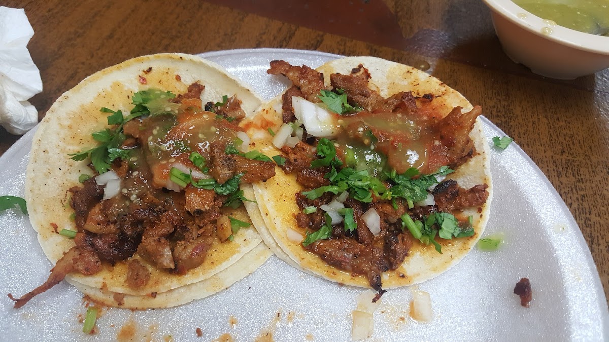 “ I always pass by when purchasing a coffee from Donut Plus, today I decided to come here for my lunch. I ordered two carne Asada and 2 Carnita tacos I got a flan and a 1/2 Coca Cola. It was $18.25. In total I tipped $1.75 so I paid $20.00. It was really yummy double tortilla tacos, the meat was yummy too. The salsas i got red and green the red is better gives you a good taste. Also the flan not my favorite but it was okay. ”